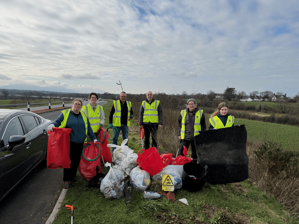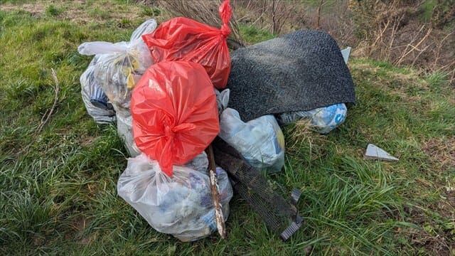 We were lucky with the weather but not so with the amount of litter. It always amazes me what people abandon in this lay-by, a couple of firsts for us, a stripped central heating boiler, I think we had everything minus the copper and two perfect gorilla tubs. A large piece of carpet was proudly dragged by our youngest attendee from the undergrowth and added to the 10 bags of litter that contained the usual random clothes, bottles, cans and fast food packaging.
